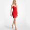 Red Ribbed One-Shoulder Cutout Midi Dress